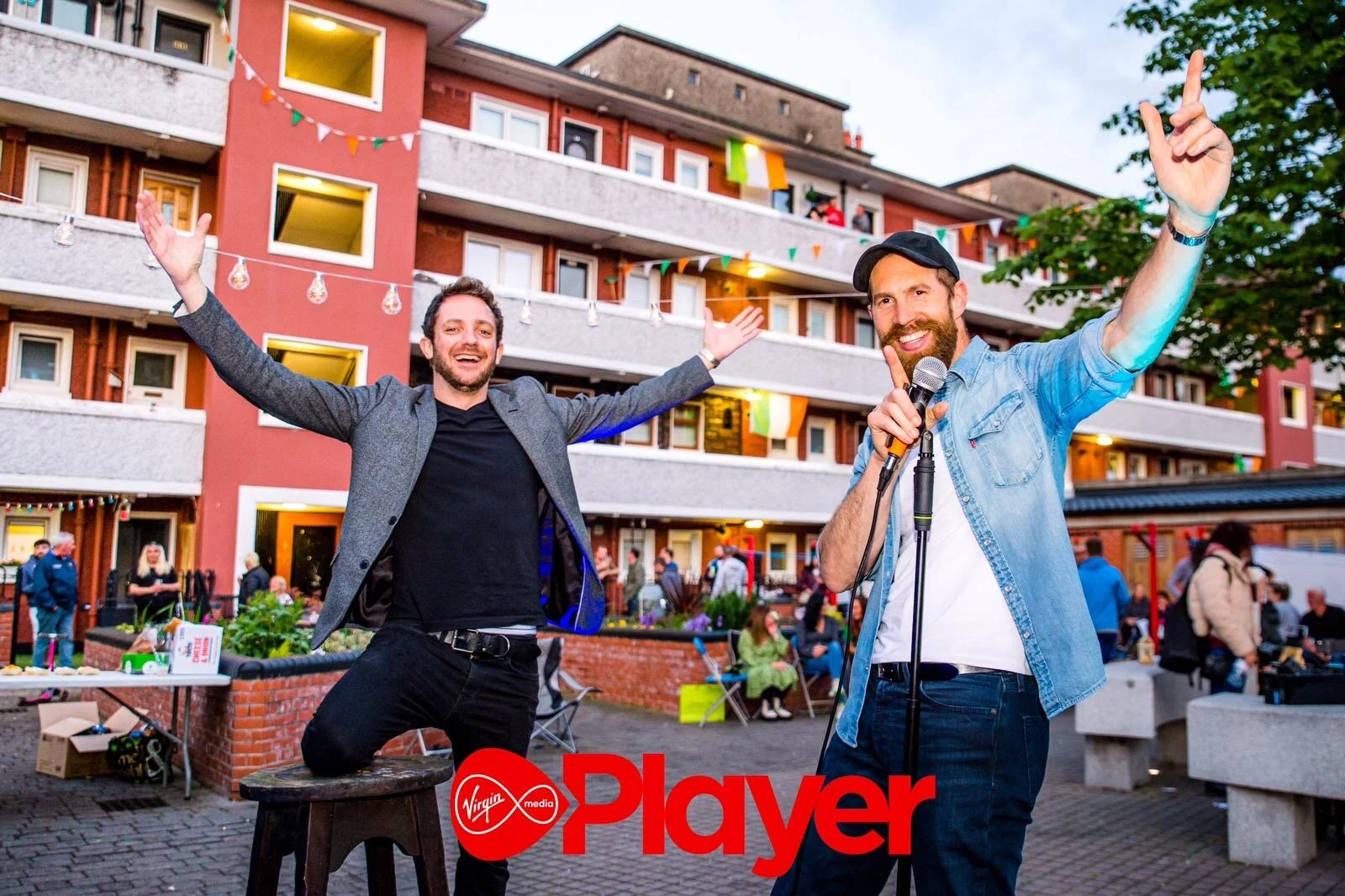 During the pandemic lockdown of 2020, comedians Danny O’Brien and Damian Clark made comedy history by filming an outdoor stand-up comedy special for the residents of O’ Rahilly House in Ringsend.